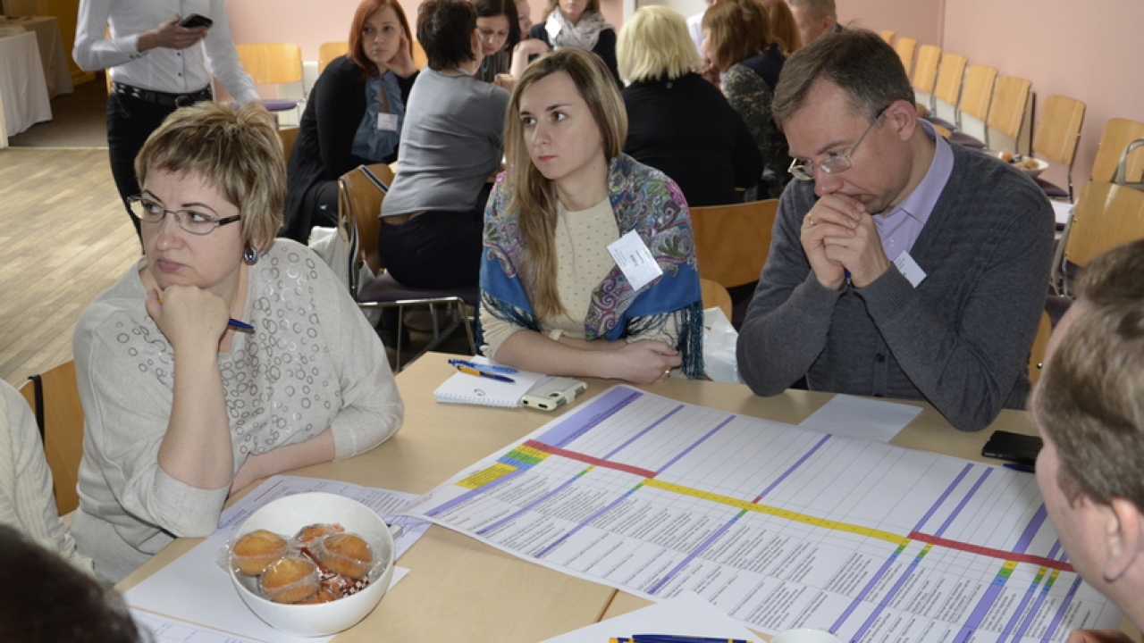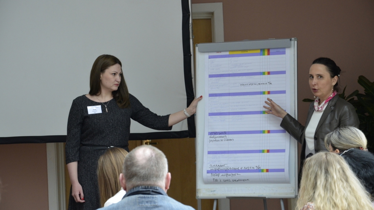 После перерыва участники круглого стола самостоятельно создавали карты оценки услуг ресепшн, клининга, курьерских отправок и услуг такси, вырабатывая основные компетенции, внутри которых выделялись ключевые зоны внимания, которые необходимо оценивать.