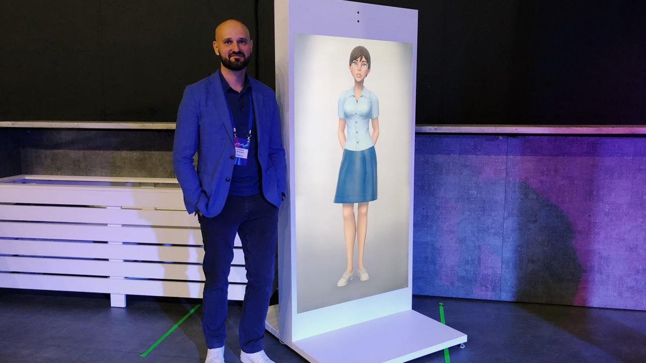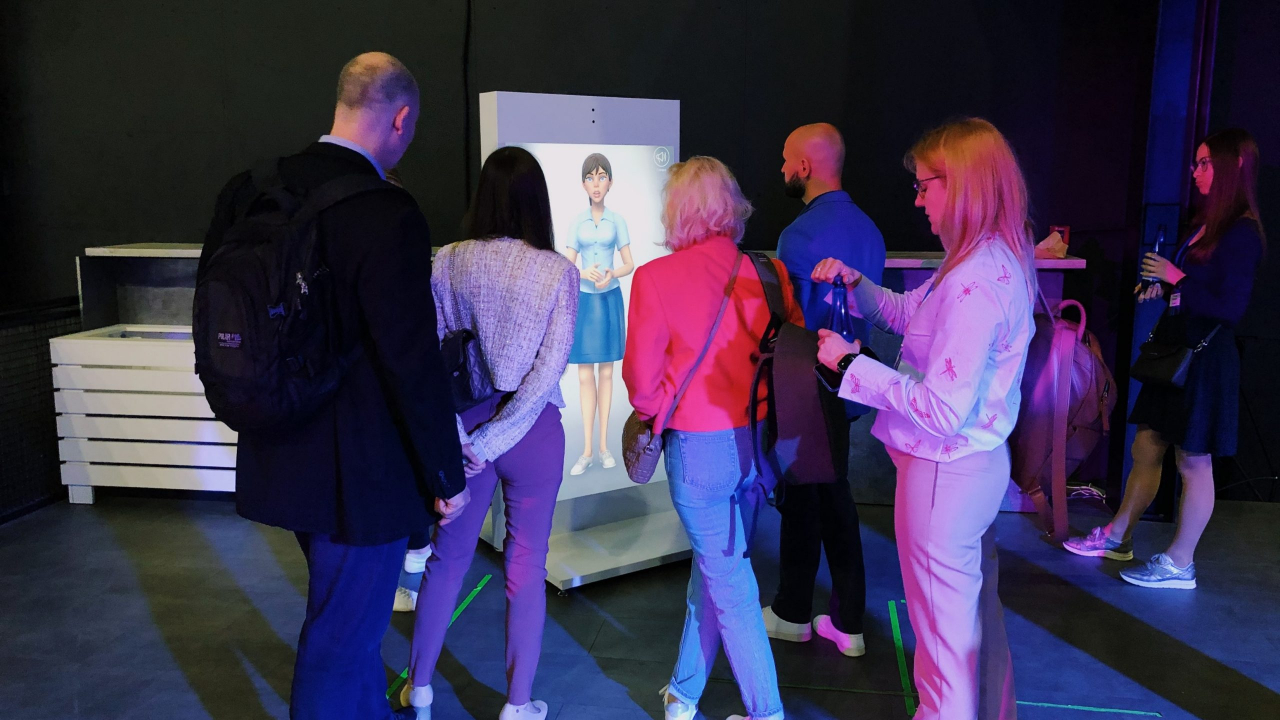 Директор по развитию бизнеса «Лофтис» Николай Шалаев представил уникальную разработку компании: «Агата — виртуальный секретарь приемной». Стелла с Агатой стояла в зоне конференции, где каждый мог пообщаться с ней и узнать о ее возможностях и задачах, которые помогает решать виртуальный секретарь Агата.